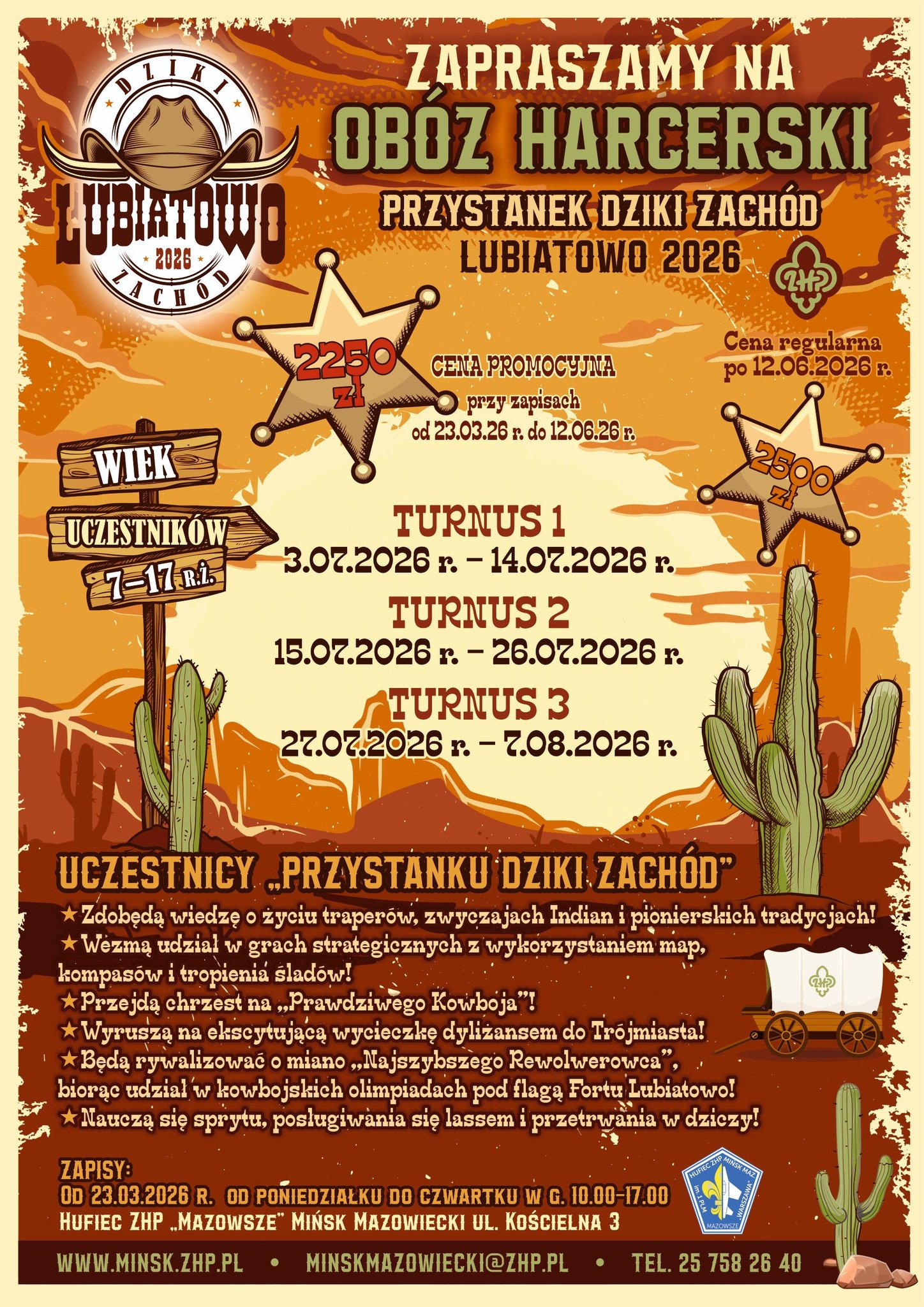 Zapisy: Hufiec ZHP „Mazowsze” w Mińsku Mazowieckim (ul. Kościelna 3) od poniedziałku do czwartku w godzinach 10:00-17:00.